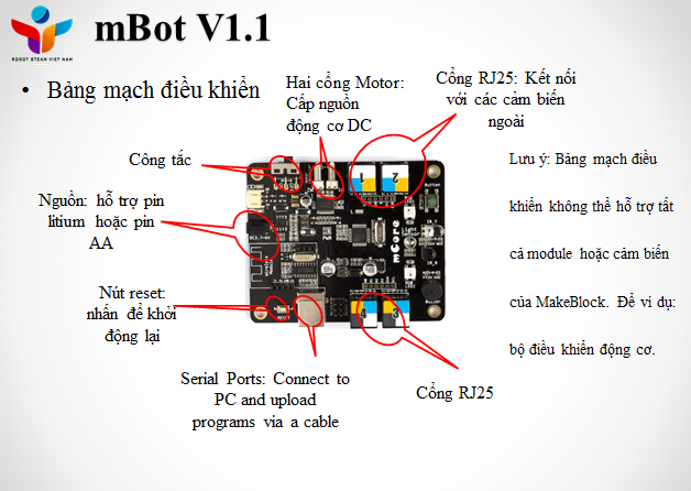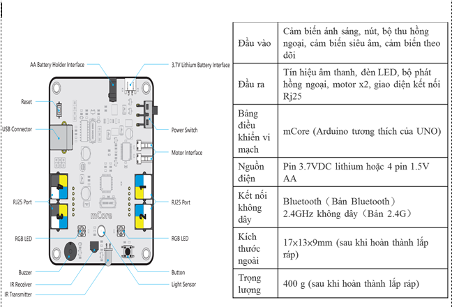 Robot lập trình mBot và các bộ phận kỹ thuật cấu thành