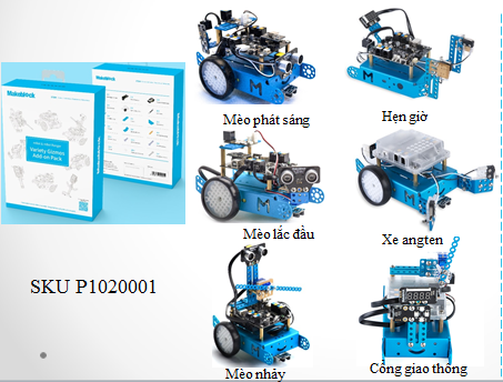 Dưới đây là một vài hình dạng mẫu mở rộng của robot giáo dục mBot: